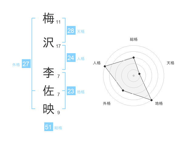 梅沢 李佐映さんを姓名の画数から五運を鑑定