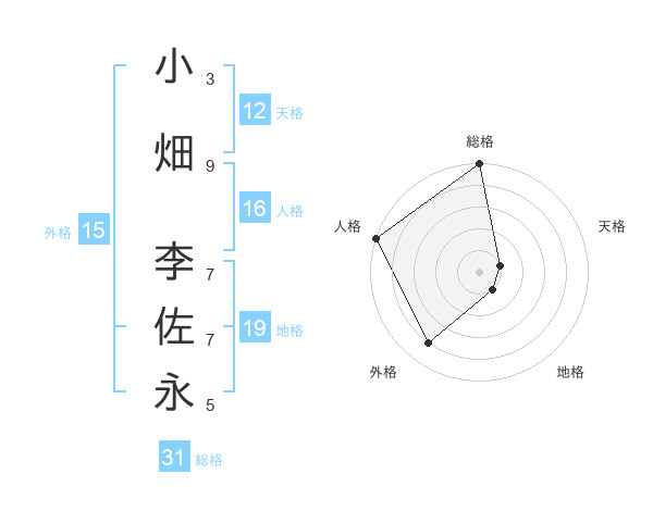 小畑 李佐永さんを姓名の画数から五運を鑑定