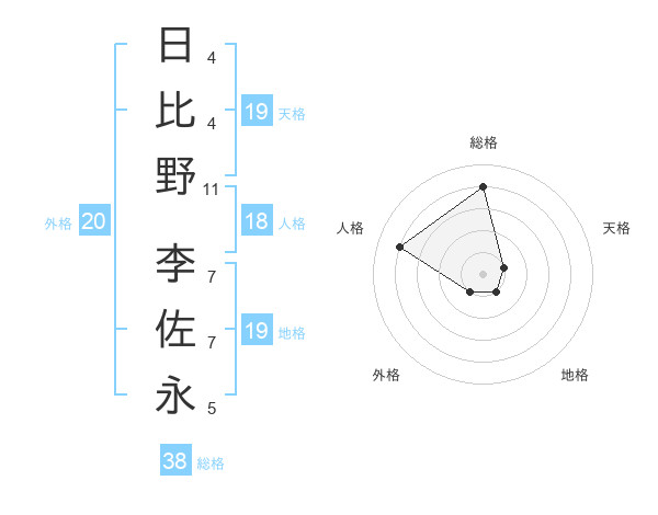 日比野 李佐永さんを姓名の画数から五運を鑑定