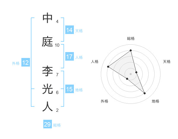 中庭 李光人さんの総格は29画の4点!