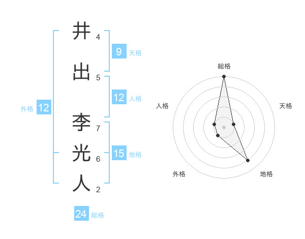 井出 李光人さんの総格は24画の5点!