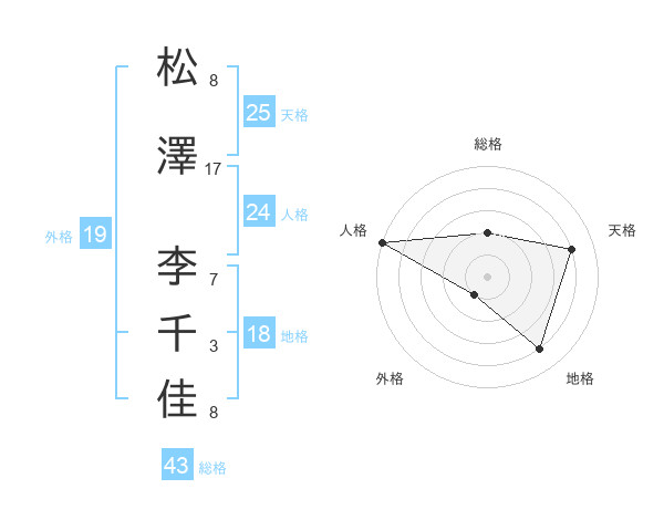 松澤 李千佳さんを姓名の画数から五運を鑑定