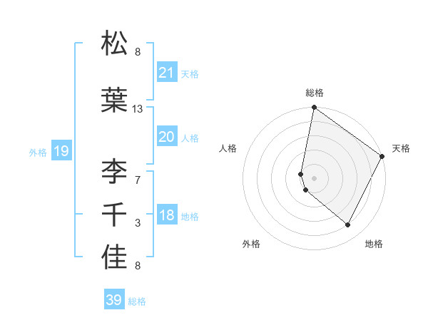 松葉 李千佳さんを姓名の画数から五運を鑑定