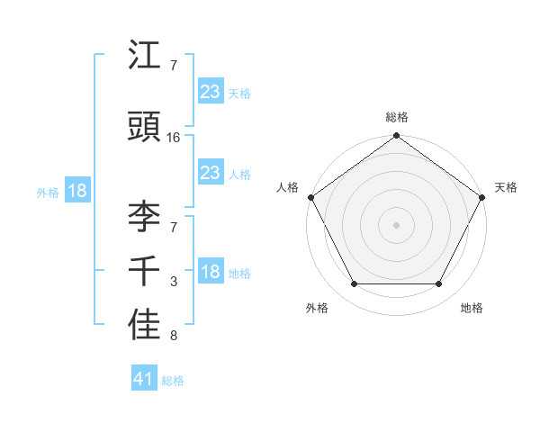 江頭 李千佳さんを姓名の画数から五運を鑑定