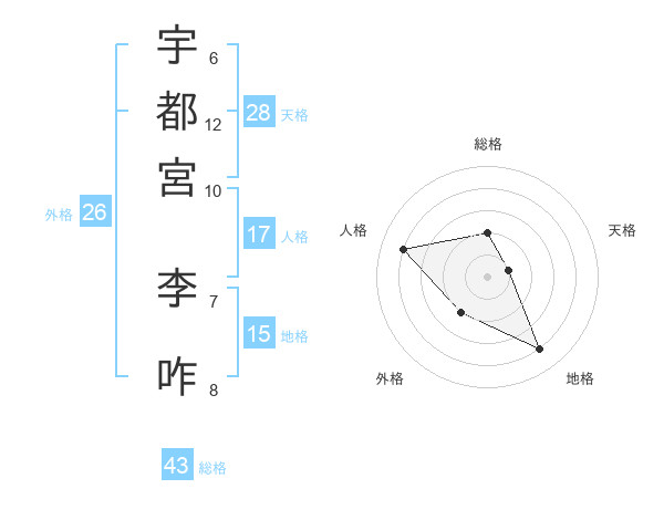 宇都宮 李咋さんを姓名の画数から五運を鑑定