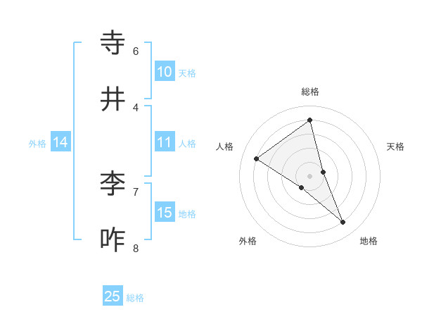寺井 李咋さんを姓名の画数から五運を鑑定