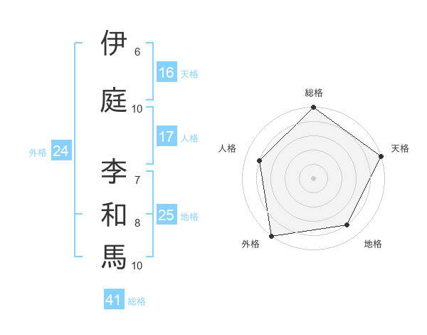 伊庭 李和馬さんを姓名の画数から五運を鑑定