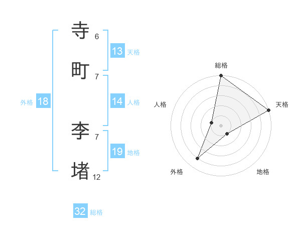 寺町 李堵さんを姓名の画数から五運を鑑定