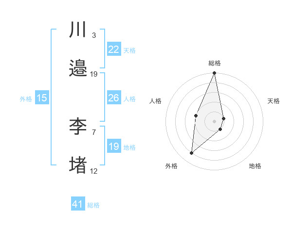 川邉 李堵さんの総格は41画の5点!
