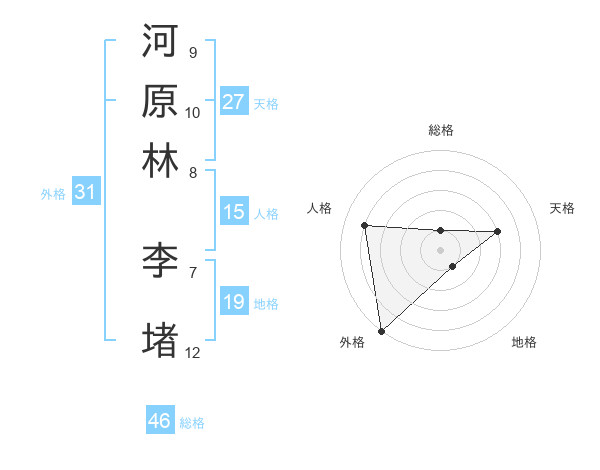 河原林 李堵さんを姓名の画数から五運を鑑定