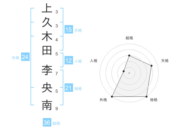 上久木田 李央南さんを姓名の画数から五運を鑑定