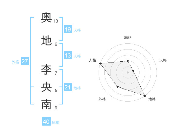 奥地 李央南さんの外格は27画の3点!
