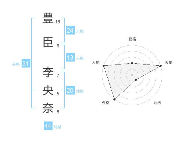 豊臣 李央奈さんを姓名の画数から五運を鑑定