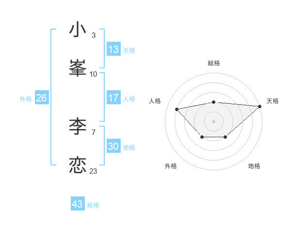 小峯 李恋さんの天格は13画の5点!