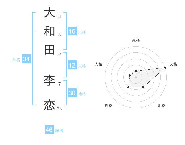 大和田 李恋さんを姓名の画数から五運を鑑定