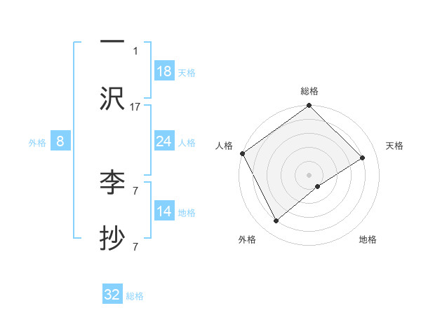 一沢 李抄さんを姓名の画数から五運を鑑定