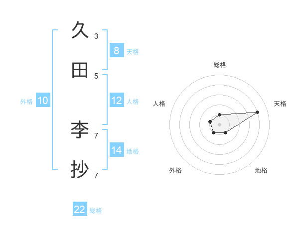 久田 李抄さんの総格は22画の1点!