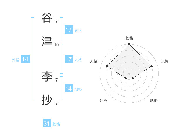 谷津 李抄さんを姓名の画数から五運を鑑定