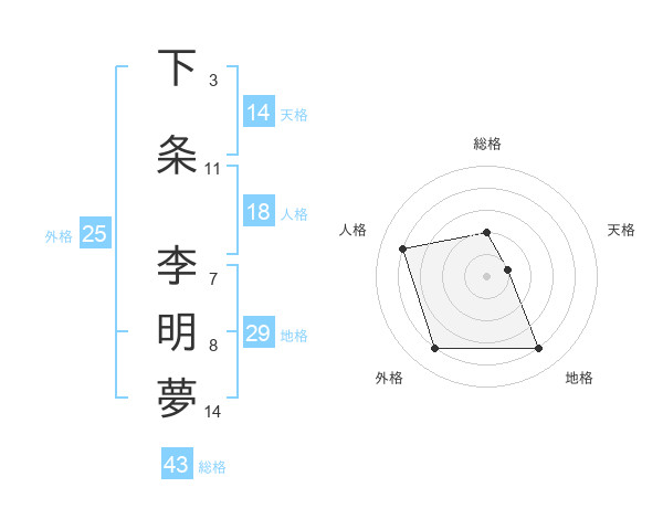 下条 李明夢さんを姓名の画数から五運を鑑定
