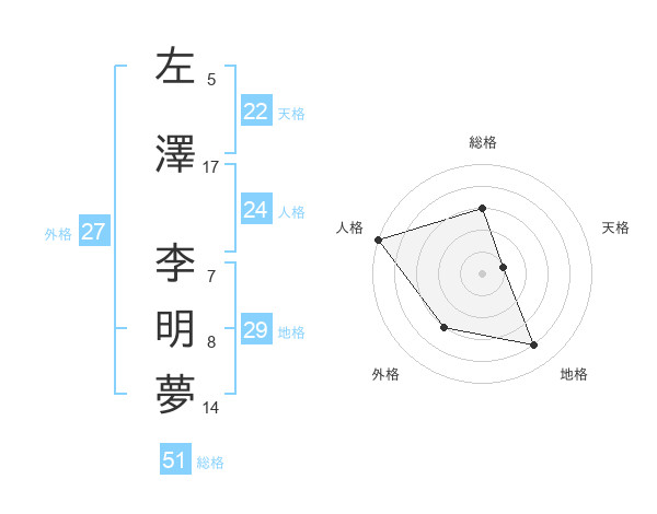 左澤 李明夢さんを姓名の画数から五運を鑑定