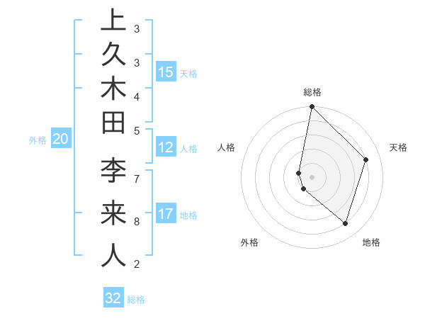 上久木田 李来人さんの天格は15画の4点!