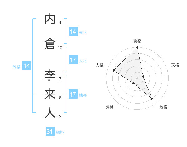 内倉 李来人さんの総格は31画の5点!