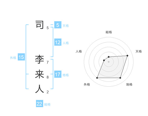 司 李来人さんの総格は22画の1点!