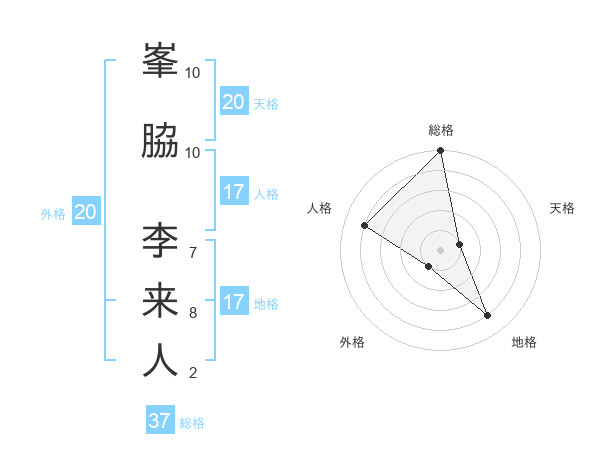 峯脇 李来人さんを姓名の画数から五運を鑑定
