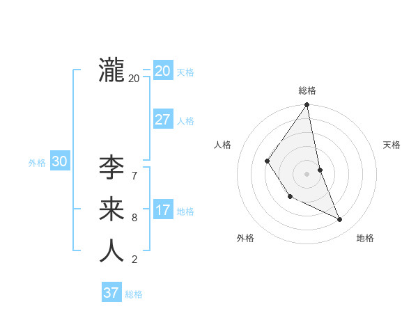 瀧 李来人さんの総格は37画の5点!