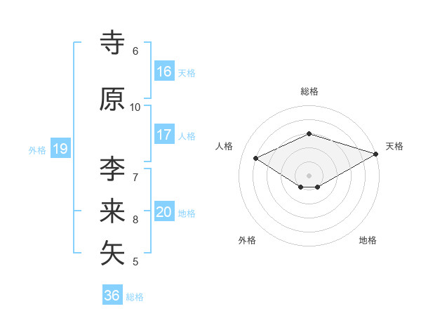 寺原 李来矢さんの天格は16画の5点!