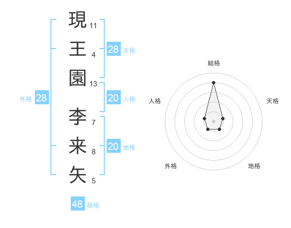 現王園 李来矢さんを姓名の画数から五運を鑑定