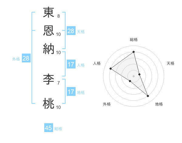 東恩納 李桃さんを姓名の画数から五運を鑑定