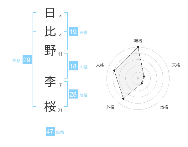 日比野 李桜さんを姓名の画数から五運を鑑定