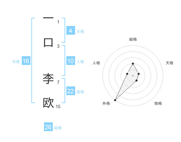 一口 李欧さんの外格は16画の5点!