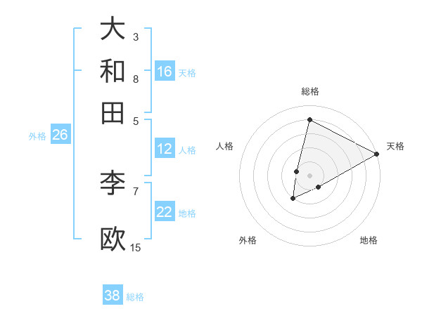 大和田 李欧さんの総格は38画の4点!