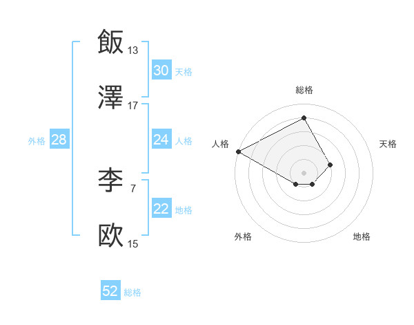 飯澤 李欧さんの総格は52画の4点!