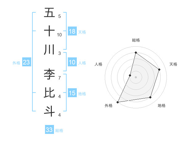 五十川 李比斗さんを姓名の画数から五運を鑑定
