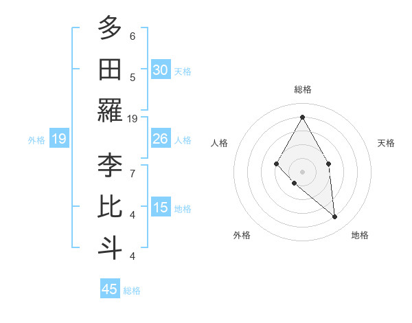 多田羅 李比斗さんを姓名の画数から五運を鑑定