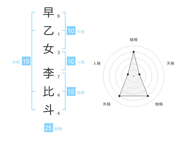 早乙女 李比斗さんを姓名の画数から五運を鑑定