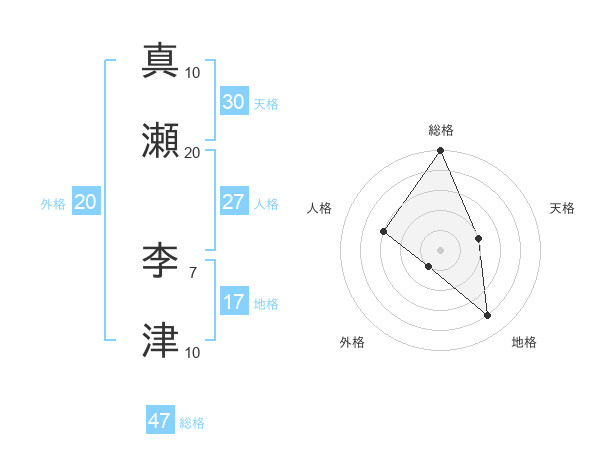 真瀬 李津さんの総格は47画の5点!