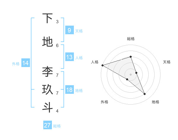 下地 李玖斗さんの総格は27画の3点!