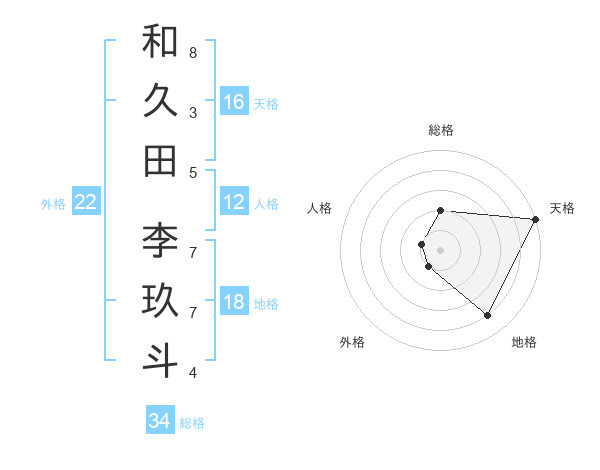 和久田 李玖斗さんの天格は16画の5点!