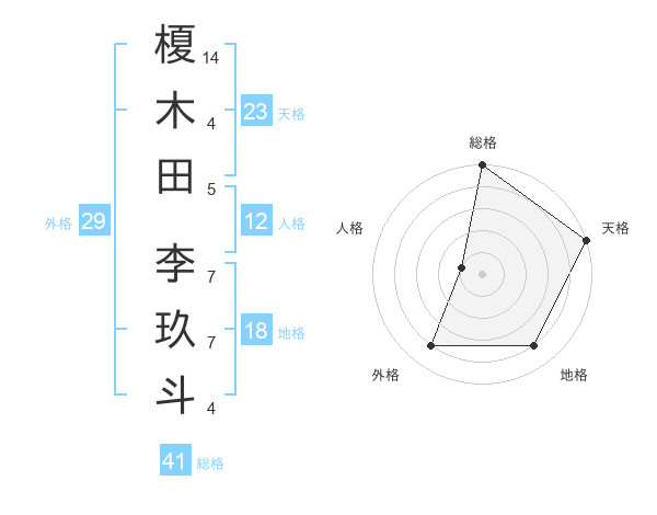 榎木田 李玖斗さんの天格は23画の5点!