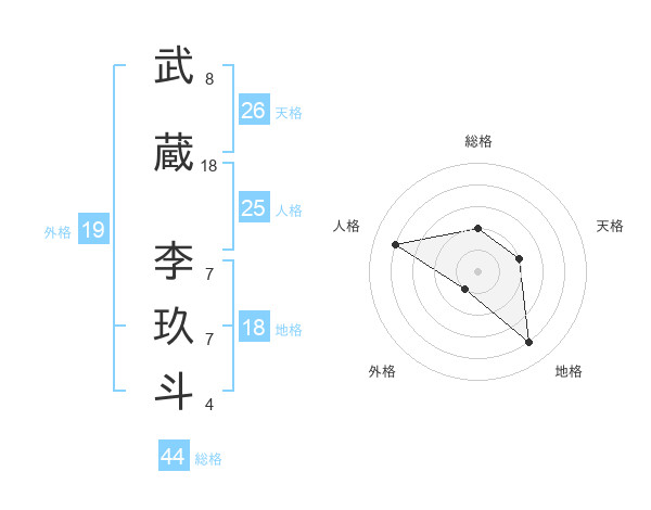 武蔵 李玖斗さんを姓名の画数から五運を鑑定