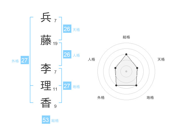 兵藤 李理香さんを姓名の画数から五運を鑑定