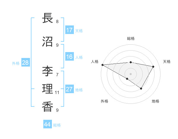 長沼 李理香さんを姓名の画数から五運を鑑定