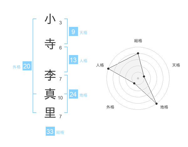 小寺 李真里さんを姓名の画数から五運を鑑定