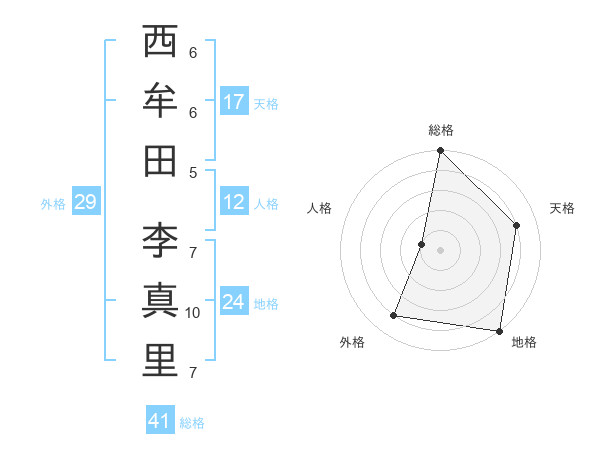 西牟田 李真里さんを姓名の画数から五運を鑑定