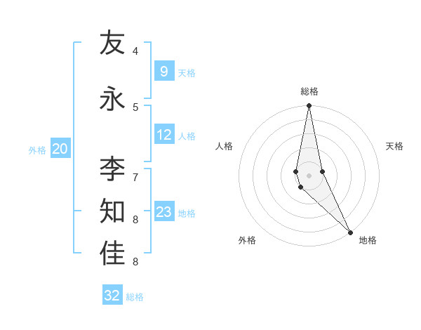 友永 李知佳さんの総格は32画の5点!