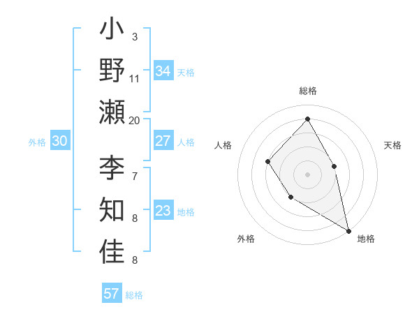 小野瀬 李知佳さんを姓名の画数から五運を鑑定